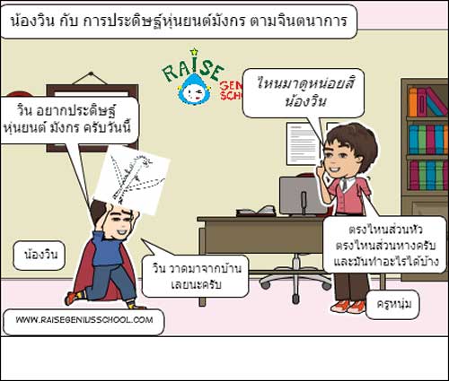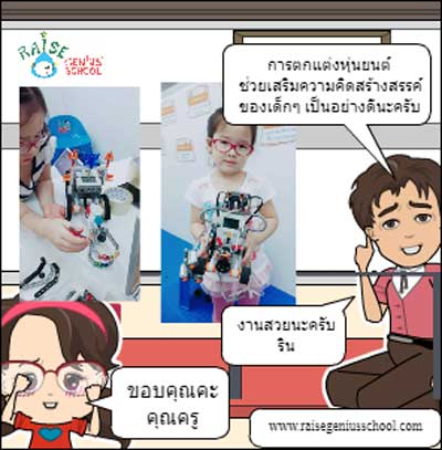 การประดิษฐ์หุ่นยนต์แก้โจทย์ จะมีประโยชน์หลายด้าน แต่จะค่อนข้างยาก เหมาะกับเด็กโตที่เรี่ยนที่ Raise Genius จนถึง Level Thinking นะครับ