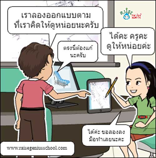 ขณะที่น้องๆ Design บนกระดาษ จะเป็นการฝึกวางระบบ,ออกแบบ และ นำเสนอ