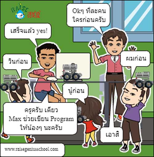เช่น เมื่อพี่ประดิษฐ์หุ่นยนต์เสร็จก่อน เพราะโตกว่า คล่องกว่า ก็สามารถสอนน้องที่เล็กกว่าได้ หรือ เมื่อพี่หัดเขียนโปรแกรมและเขียนโปรแกรมของตนเสร็จ ก็สามารถช่วยเขียนโปรแกรมให้กับน้องๆ คนอื่นๆได้