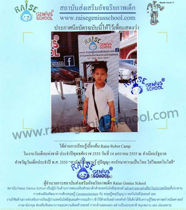 - โครงการ กิจกรรมเพื่อสังคม กิจกรรมเปิดโลกหุ่นยนต์วันเด็กร่วมกับสภาความมั่นคงแห่งชาติ ม.ค. 2555 ณ ทำเนียบรัฐบาล